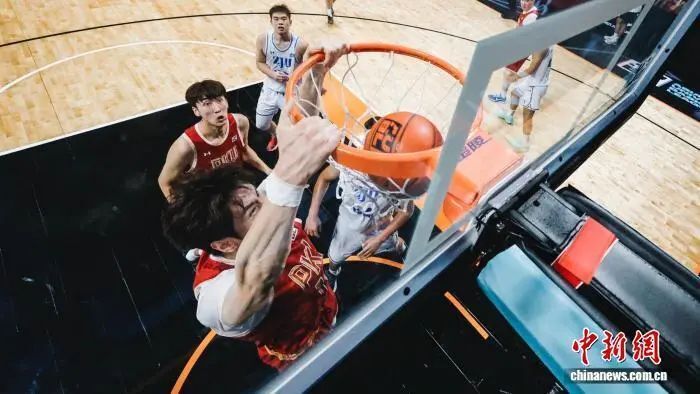 8月20日,AUBL亚洲大学生篮球联赛小组赛阶段收官。最终,北京大学、清华大学、延世大学、政治大学分别以不败战绩斩获小组头名,建国大学、白鸥大学、上海交通大学、额图根大学均以1胜1负的战绩位居小组第二。图为北京大学(红)与浙江大学(白)在比赛中。亚洲大学生篮球联赛组委会 供图